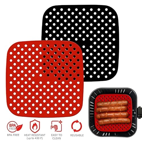 Daga - بطانات سيليكون للمقلاة الهوائية - اكتشف بطانات المقلاة الهوائية المربعة المثالية القابلة لإعادة الاستخدام، 21.5 سم، مصممة لتعزيز تجربة الطبخ الخاصة بك مع راحة غير لاصقة وسهلة التنظيف