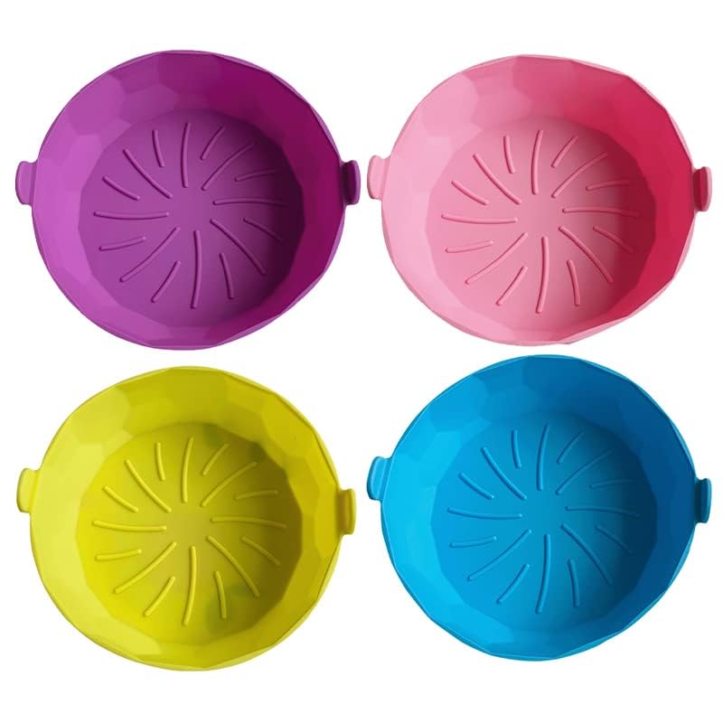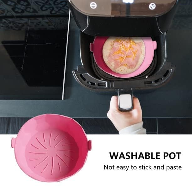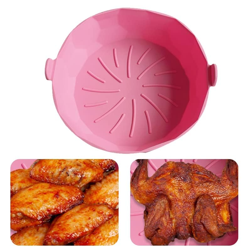 elyassin - وعاء سيليكون للقلاية الهوائية 20 سم للطعام غير لاصق، ملحقات فرن امنة غذائيا بديلة لورق البرشمان قابلة لاعادة الاستخدام وتناسب القلاية الهوائية بسعة 3.6 الى 6.8 كوارت (بينك، دائري، مقاس 16-20 سم)