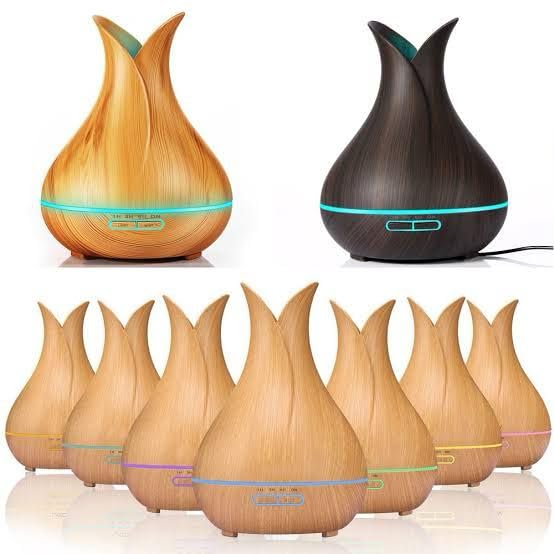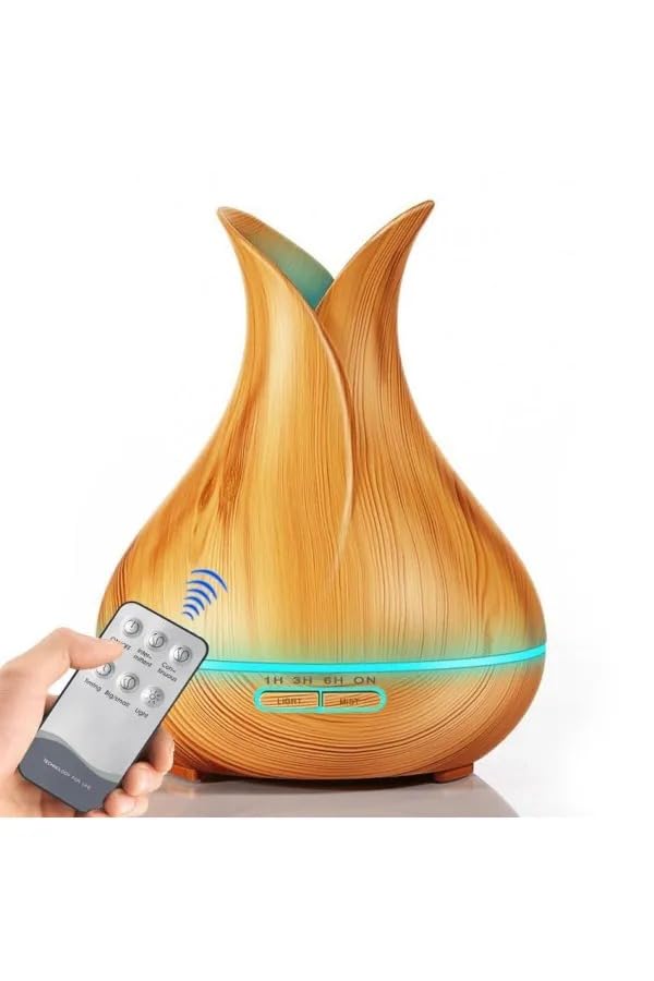 - جهاز ترطيب بالبخار بخاصية إطلاق الروائح العلاجية بإضاءة ار جي بي وتصميم بلمسة خشبية فاتحة، سعة 550 مل.