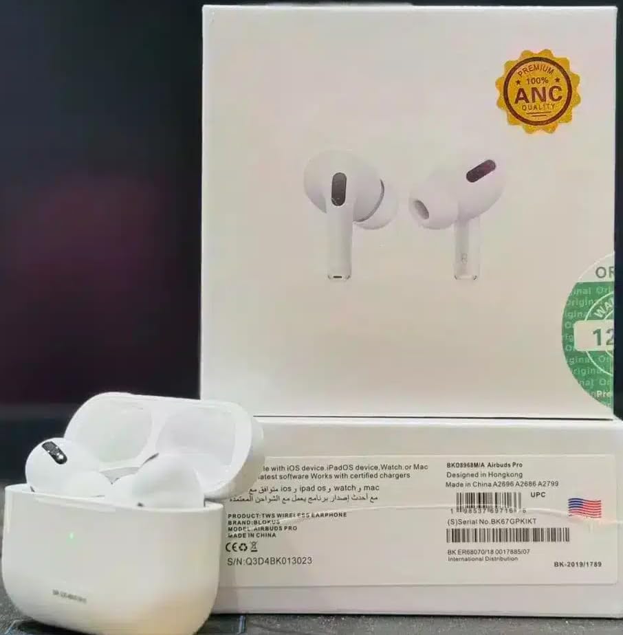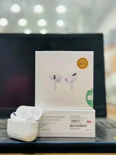 سماعات اير برو من الجيل الثاني، سماعة أذن شبه أصلية مع علبة شحن لاسلكية، بخاصية إلغاء الضوضاء، متوافقة مع آيفون وأندرويد وجميع الموبايلات (ابيض)