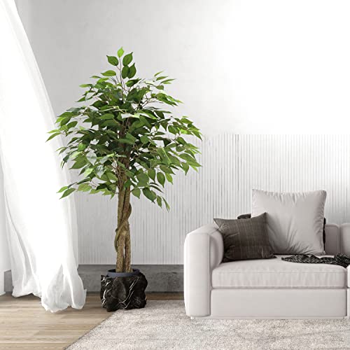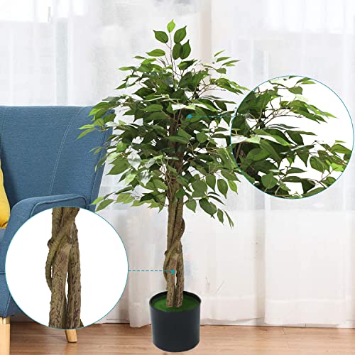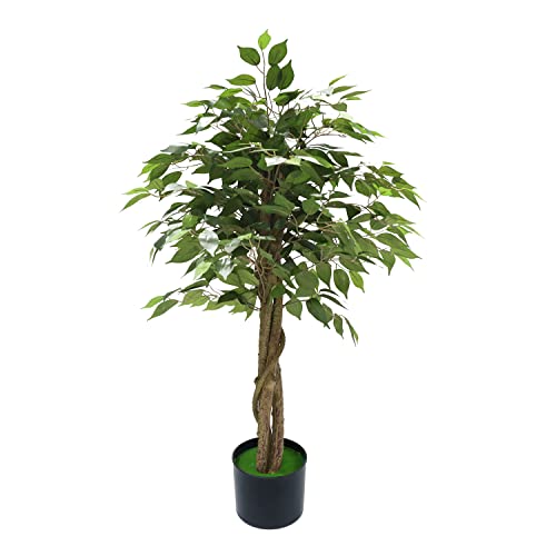 Airbin - شجرة اللبخ الحريرية الاصطناعية بطول 121 سم، شجرة بانيان للديكور الداخلي والخارجي للمنزل والمكتب والحديقة والديكور العصري