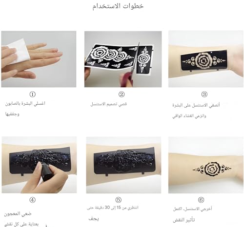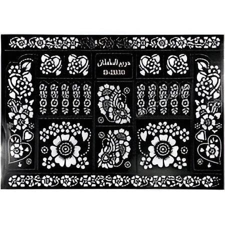 - لا يتم تضمين أي حبر – استخدم الحناء الخاصة بك، أو طلاء الجسم أو الجليتر للتلوين.