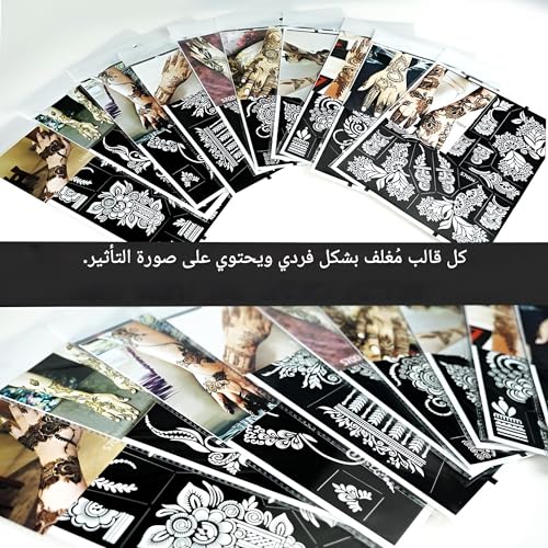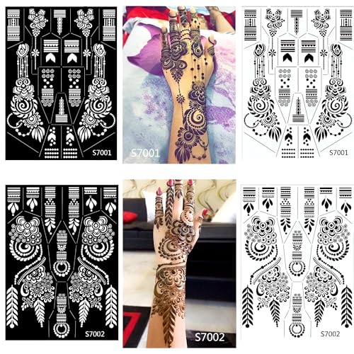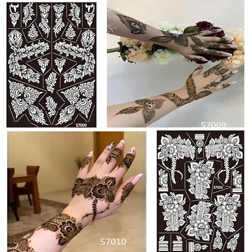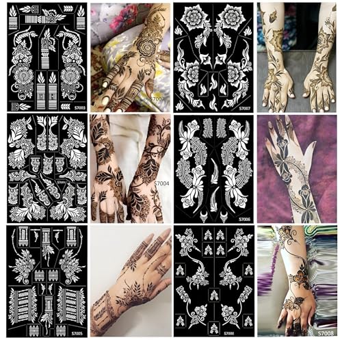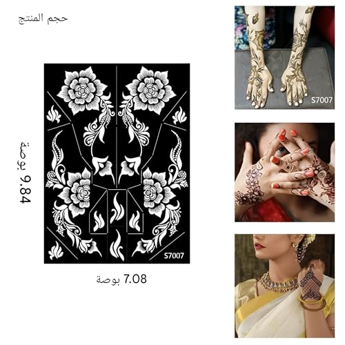 Generic - ملصقات وشم الحناء المؤقتة للذراعين واليدين والوجه والجسم بتصاميم جليتر عربية هندية ولمسة نهائية بأسلوب البخاخة، وشم البخاخة للحفلات والمكياج اليدوي وجلسات التصوير (طراز رقم 2)