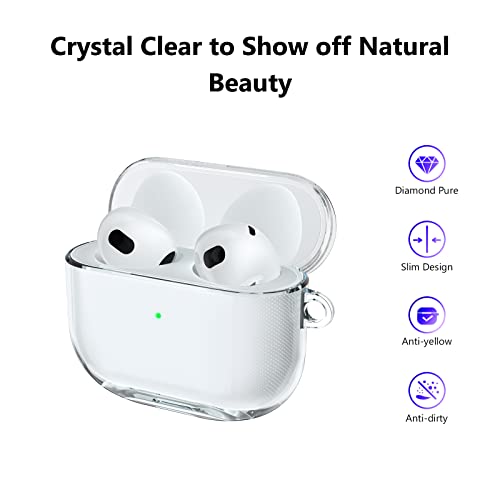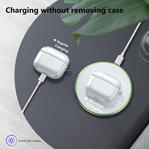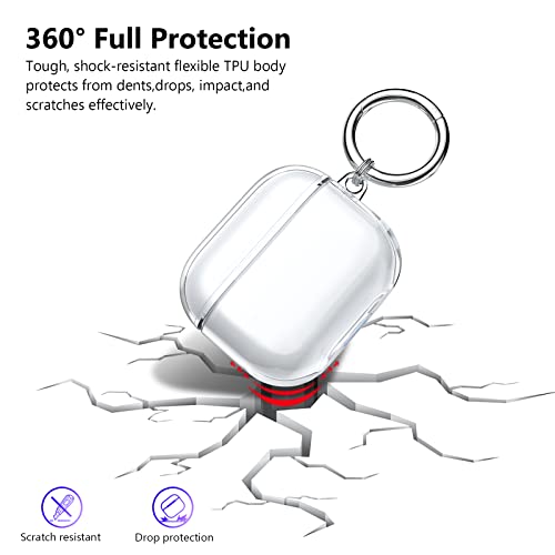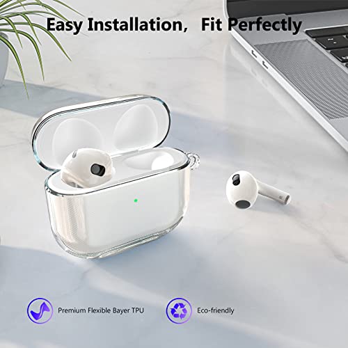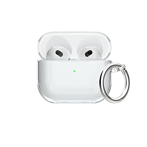 Aircawin - علبة حماية شفافة مقاومة للصدمات اصدار 2021 لسماعة ايربودز 3 الجيل الثالث من ايركاوين، علبة شحن لحماية كاملة مصنوعة من البولي يوريثين المقاوم للحرارة مع سلسلة مفاتيح - شفافة، تي بي يو