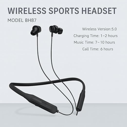 Generic - ايردوم سماعة رأس رياضية لاسلكية BH87، نيكباند، بلوتوث 5.0، أسود