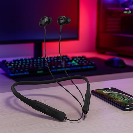 - تصميم النيكباند المريح: تصميم عملي على شكل طوق يوضع حول الرقبة باللون الأسود، مثالي للاستخدام الرياضي والحركة النشطة