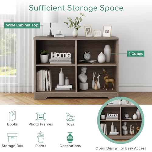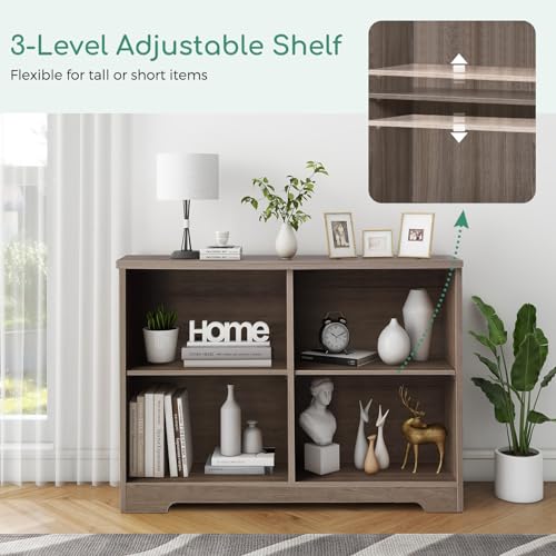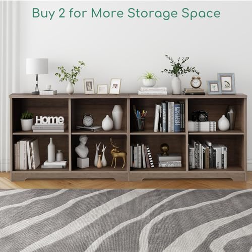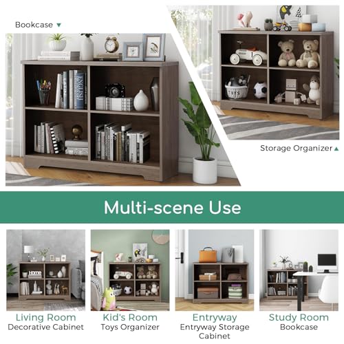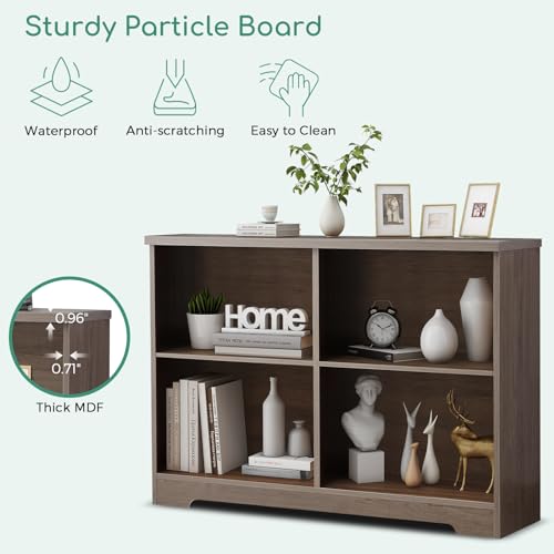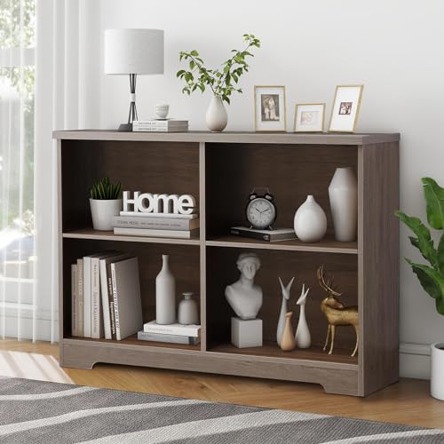 Airdown - اير داون رف كتب صغير من طبقتين، خزانة كتب بـ 4 مكعبات مع ارفف قابلة للتعديل، خزانة عرض منظمة تخزين خشبية عصرية لغرفة الاطفال وغرفة المعيشة والدراسة والمدخل، لون خشب الجوز