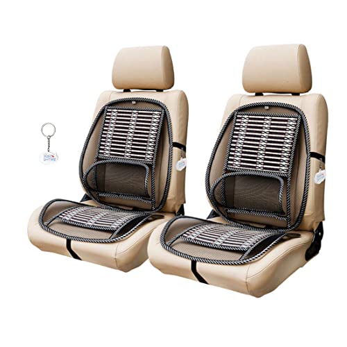AIRFUL - وسادة مقعد سيارة مريحة من الخيزران ايرفول السيارة وكرسي المكتب وغطاء دعم مع حزام مرن ومسند ظهر للكرسي قطعتان