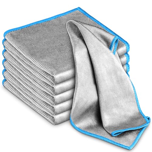 Airlab - اير لاب 6 قطع قماش تنظيف من المايكروفايبر بوجهين، قماش زجاجي سحري خالٍ من الوبر، قماش تنظيف النوافذ خالٍ من الخطوط، قماش مراة، قماش للمطبخ والاطباق، مناديل وندر وايبس لتجفيف الحمام