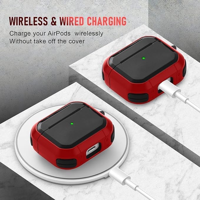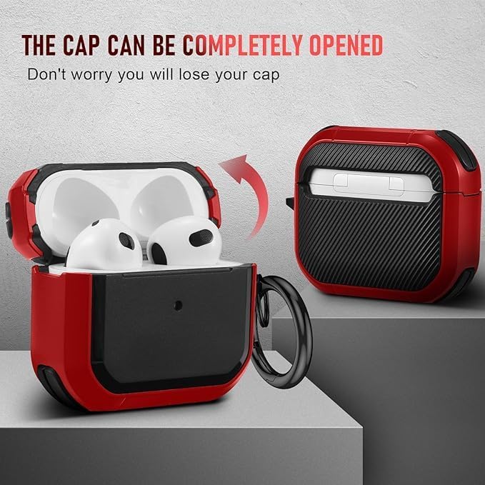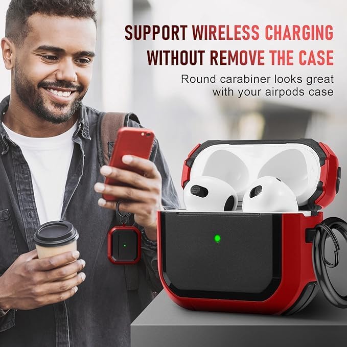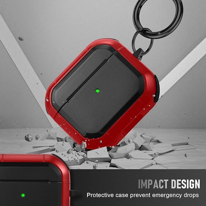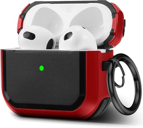 ELMO3EZZ - حافظة ايربودز 3 من المعز مع سلسلة مفاتيح واقية كاملة مضادة للصدمات البولي يوريثين المقاوم للحرارة الناعم متوافقة سماعات ابل الجيل الثالث للنساء والرجال باضاءة ليد أمامية مرئية أحمر