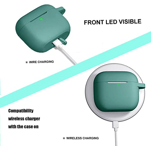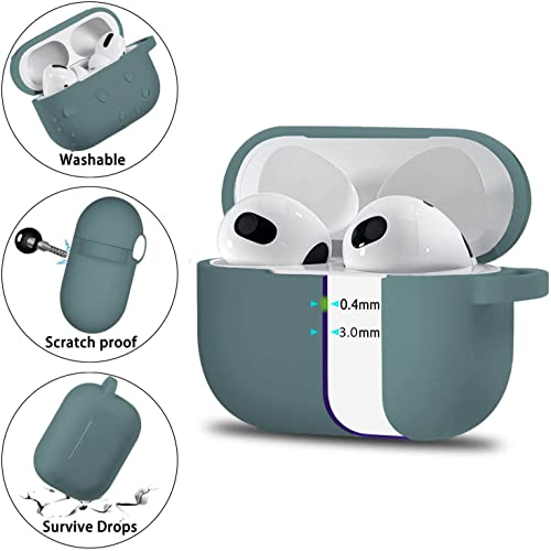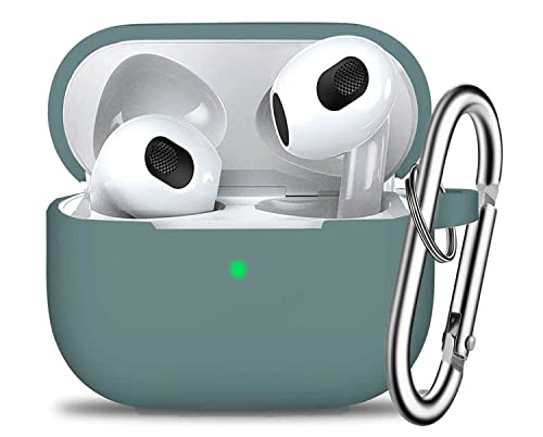 SWINCHO - جراب حماية لسماعات ايربودز الجيل الثالث، اكسسوارات واقية من السيليكون مع سلسلة مفاتيح متوافقة مع ابل ايربودز الجيل الثالث للنساء والرجال مضاد للصدمات بلون اخضر صنوبري