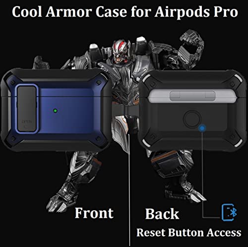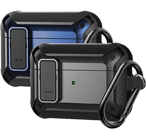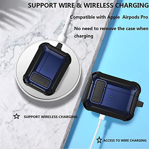Olytop - جراب حماية بالكامل [محكم الاغلاق] بهيكل صلب متين مضاد للصدمات من الدرجة العسكرية مع عليقة للمفاتيح لعلبة شحن سماعات ابل ايربودز برو للنساء والرجال من اوليتوب (اسود وازرق)، بولي يوريثين اللدن بالحرارة