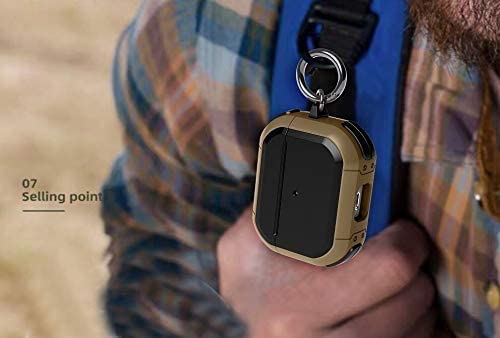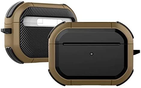 ELMO3EZZ - جراب حماية صلب لسماعة ايربودز برو 2 مع سلسلة مفاتيح لحماية كاملة ومتينة بدرجة عسكرية، متوافقة مع حافظة نيو ابل ارمور لسماعات ايربود برو- الجيل الثاني 2022، بني