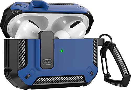 Generic - غطاء جراب AirPods Pro 2019 بغطاء قفل وخطاف سلسلة المفاتيح ، جراب شديد التحمل ومقاوم للغبار بطبقة مزدوجة (اسود وازرق)، لايربودز برو، ألياف كربونيه البولي يوريثين الحراري