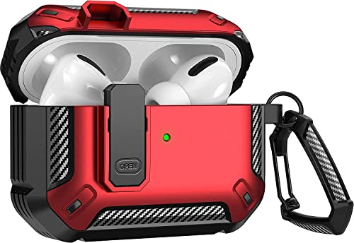 Generic - جراب سماعات إيربودز برو 2019 مع غطاء قفل وخطاف لسلسلة المفاتيح، جراب مزدوج الطبقات شديد التحمل ومقاوم للغبار (أحمر وأسود)، لابل ايربودز برو 2019