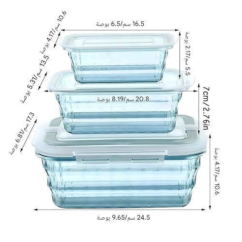 - حاويات صغيرة الحجم موفرة للمساحة تناسب الخزانات أو الثلاجة، مما يوفر الأناقة والعملية في عبوة واحدة مرتبة.