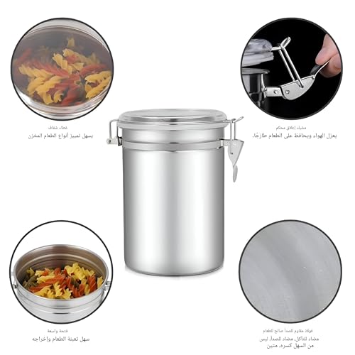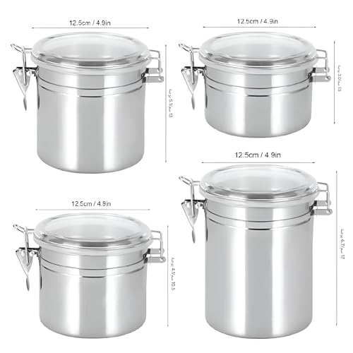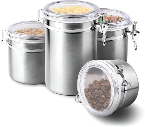 Generic - حاويات محكمة الغلق - مجموعة تخزين طعام من الستانلس ستيل مكونة من 4 قطع مع اغطية شفافة وآليات قفل امنة للقهوة والشاي والسكر والبسكويت