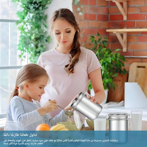 - مصنوعة من الستانلس ستيل 410 عالي الجودة، تأتي هذه الحاويات مع أغطية أكريليك خالية من البيسفينول ايه وبطانة من السيليكون، مما يضمن سلامة الطعام ومتانته. يحافظ الإغلاق المحكم على الرطوبة والهواء، مما يحافظ على نضارة البضائع المخزنة لفترة طويلة. على عكس البرطمانات الزجاجية، فإن هذه الحاويات المصنوعة من الستانلس ستيل متينة ومقاومة للكسر، مما يجعلها خيارًا موثوقًا به لأي بيئة مطبخ.