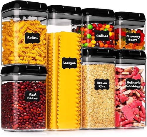Generic - مجموعة حاويات تخزين طعام محكمة الإغلاق للمطبخ والمخزن وحاويات بلاستيكية شفافة بغطاء إغلاق سهل، طقم من 7 قطع
