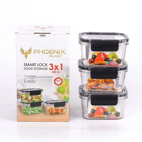 Generic - طقم علب حفظ الطعام للثلاجة محكمة الغلق 3 قطع سعة 400 مللي – حاويات تخزين صغيرة لتنظيم الطعام داخل الثلاجة AR