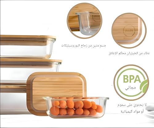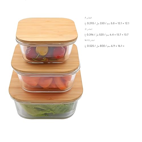 Generic - تخزين طعام زجاجي محكم الغلق - غطاء خيزران من البورسليكات المقاوم للحرارة، 3 مقاسات لتنظيم المؤن، امن للاستخدام في الميكروويف والثلاجة (الخيار 2)
