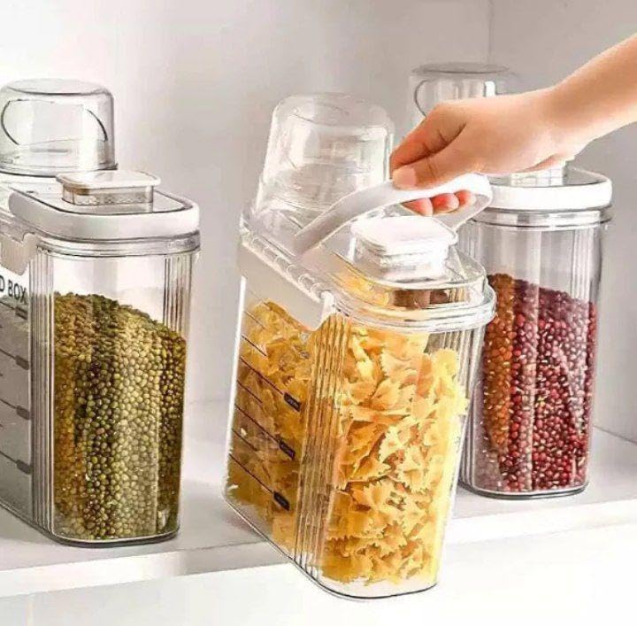 - مجموعة من 3 علب تخزين طعام من الاكريليك محكمة الإغلاق مع كوب قياس رائعة للطحين أو السكر أو الأرز، مما يضمن الحفاظ على الطعمة طازجة وسهلة التنظيم للمطبخ.
