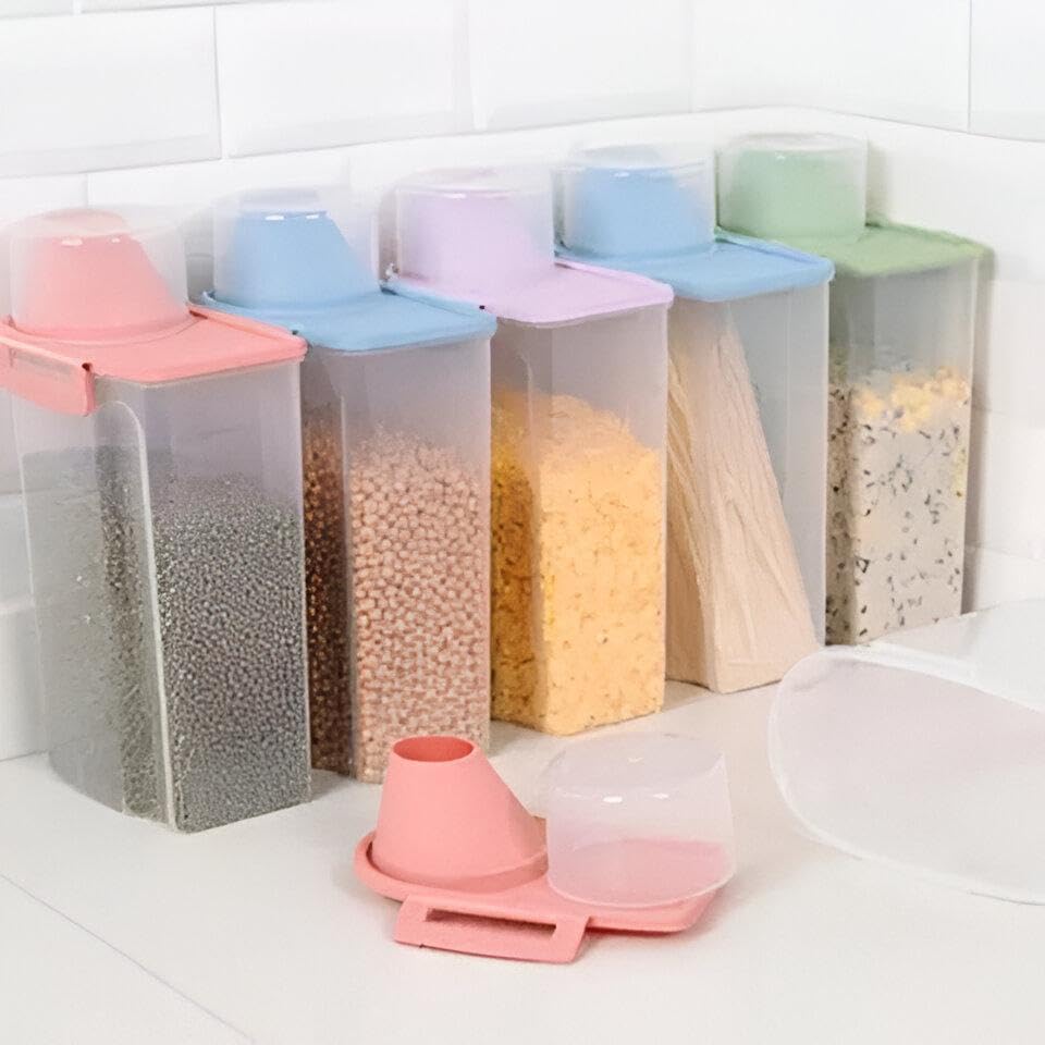- حاويات تخزين الحبوب مصنوعة من البلاستيك المتين الآمن غذائيًا، وقد تم تصميمها لمقاومة التشوه؛ كما أنها آمنة للاستخدام اليومي. كذلك تضمن خامتها القوية طول العمر، مما يجعلها خيارًا موثوقًا به لتخزين المواد الغذائية المختلفة مع الحفاظ على المعايير الصحية.