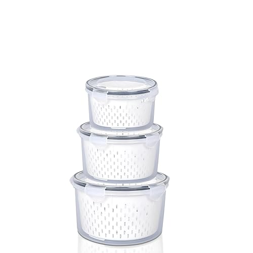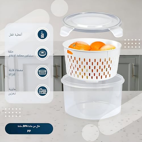 Generic - علب بغطاء محكم الغلق - حاويات تخزين طعام دائرية مبتكرة للثلاجة مصممة للحفاظ على منتجاتك طازجة ومنظمة مع ميزات تصفية سهلة