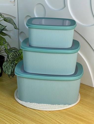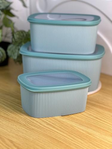 Generic - طقم علب ثلاجة بلاستيك محكم الغلق – 3 قطع متعددة الاستخدام – لتخزين الطعام والفواكه والحلويات (أخضر)