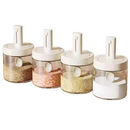 Generic - برطمان توابل محكم الإغلاق - تصميم بملعقة سحب لسهولة الوصول إلى الملح والفلفل والسكر والتوابل (6 قطع)