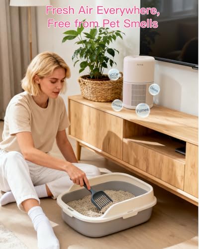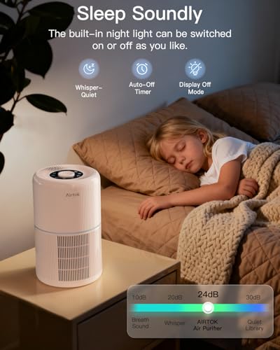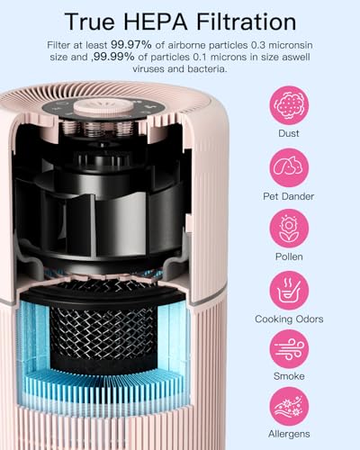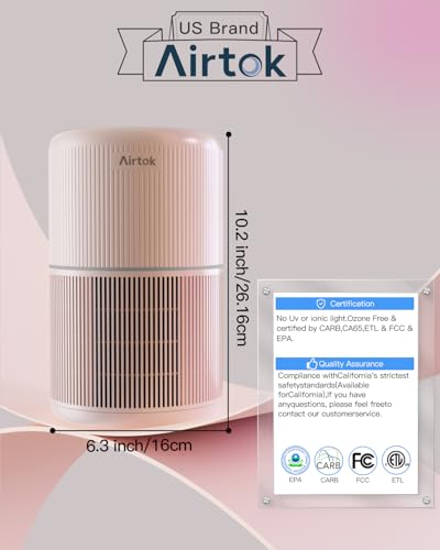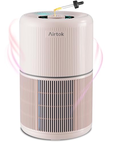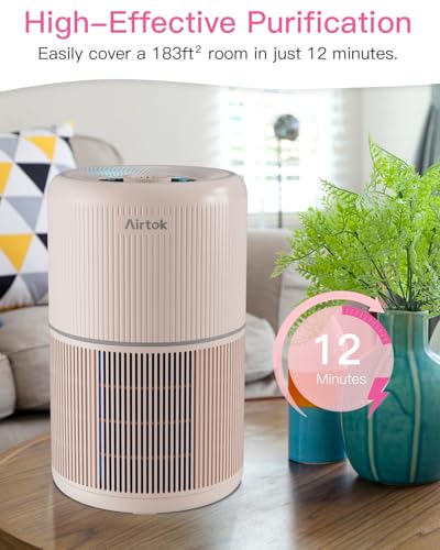 AIRTOK - منقي هواء لغرفة النوم والمنزل، فلتر هواء H13 ترو هيبا للدخان والغبار والروائح وحبوب اللقاح ووبر الحيوانات الأليفة بنسبة 99.97%، منقي هواء للغرف الكبيرة مع اسفنجة عطرية من اير توك، وردي