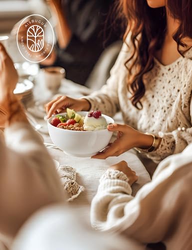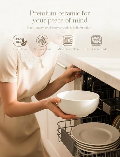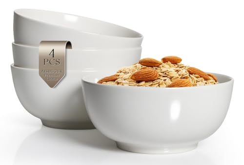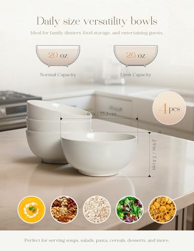 AISBUGUR - ايسباجور اوعية حساء 28 اونصة، اوعية سيراميك بيضاء 6 انش، مجموعة من 4 قطع، اوعية للحساء والحبوب ودقيق الشوفان والفواكه والارز، امنة للاستخدام في غسالة الصحون والميكروويف