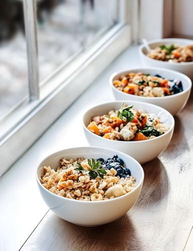- حجم كبير ومتعدد الاستخدامات: مجموعتنا المكونة من 4 أوعية سيراميك بيضاء، يبلغ قطر كل منها 6 انش وارتفاعها 2.9 انش، تحمل 28 اونصة. أوعية الحساء هذه مثالية لتقديم الحساء والسلطات والمعكرونة والحبوب والحلويات وأكثر من ذلك. مثالية للعشاء العائلي وتخزين الطعام وتسلية الضيوف.