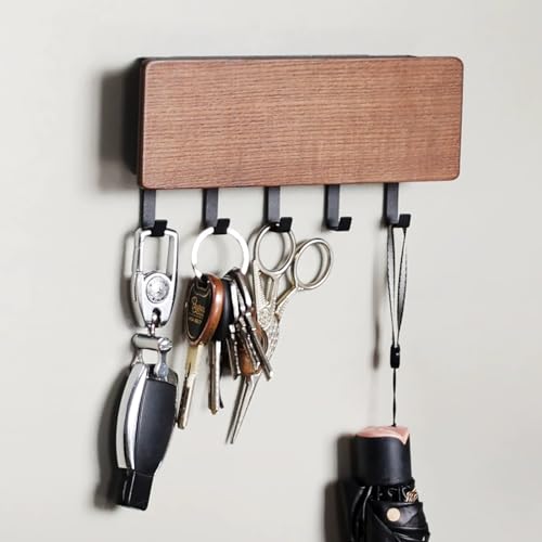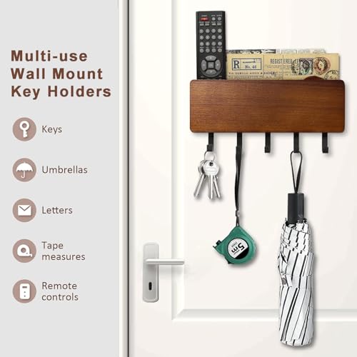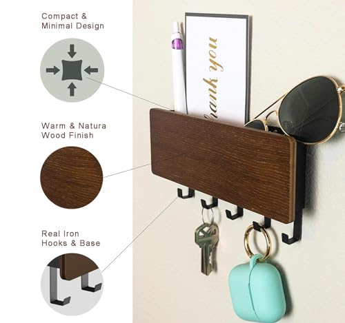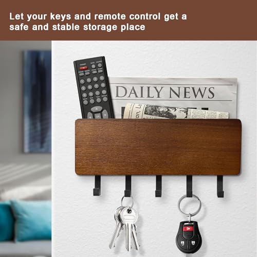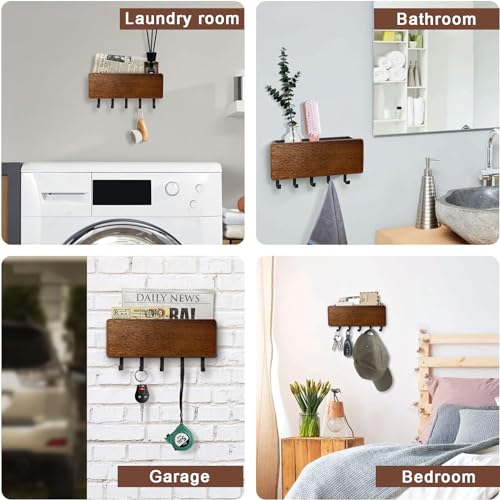 AISHEDYER - حامل مفاتيح يثبت على الحائط من ايشيدير للحائط مع 5 خطافات وصينية شماعات خشبية بتصميم ريفي لديكور المنزل منظم البريد للممر والمدخل وغرفة النوم والمكتب