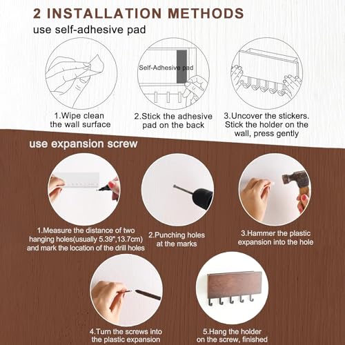 - طريقتان للتركيب: تتضمن العبوة: 5 خطافات حامل مفاتيح مثبت على الحائط × 1، وسادة ذاتية اللصق × 1، مرساة × 2، برغي × 2، يمكنك تركيبها عن طريق ثقب الثقوب أو اللصق الذاتي.