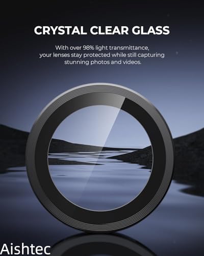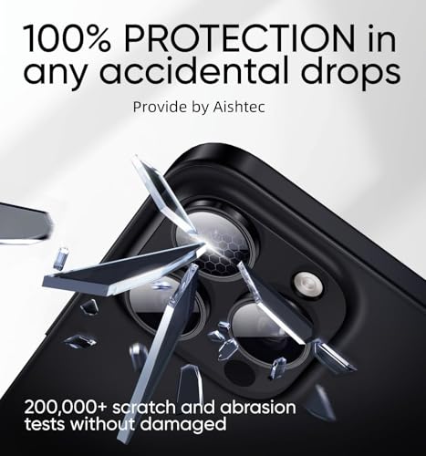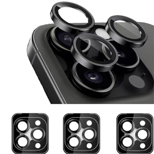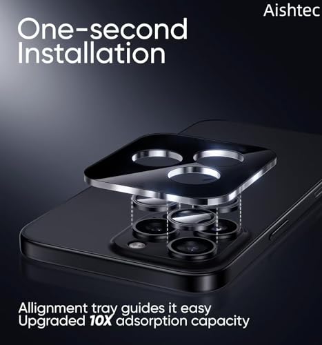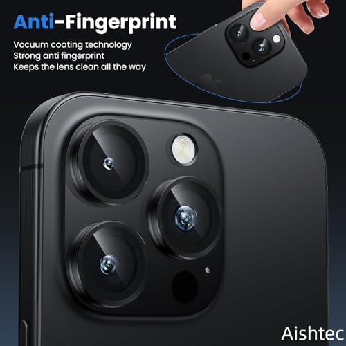 AISHTEC - واقي عدسة الكاميرا من ايشتيك [عبوة من 3 قطع لموبايل ايفون 15 برو وايفون 15 برو ماكس - غطاء ميتا من الزجاج المقوى فائق الدقة 9 اتش - اسود