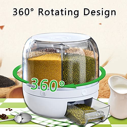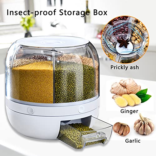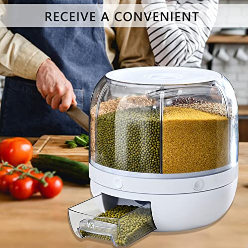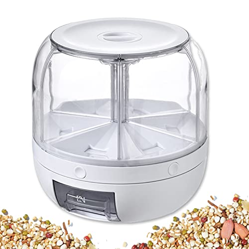 Aisny - موزع حبوب 6 في 1 - موزع سفر دوار 360° - منظم مطبخ وموزع حبوب للأرز والفاصوليا والحبوب والشعير والدخن ورقائق الذرة من ايسني