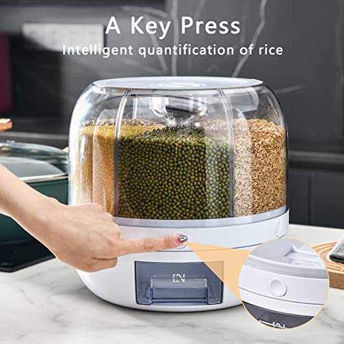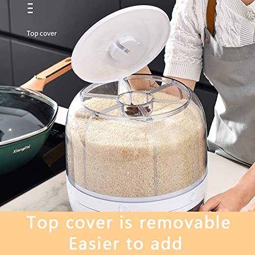 - موزع حبوب شفاف -- يدعم موزع الأرز المزود بـ 6 شبكات التخزين المصنف والضغط على زر واحد للحصول على الطعام؛ دلو السفر الدوار الشفاف مرئي، مما يجعل السعة سهلة المراقبة.