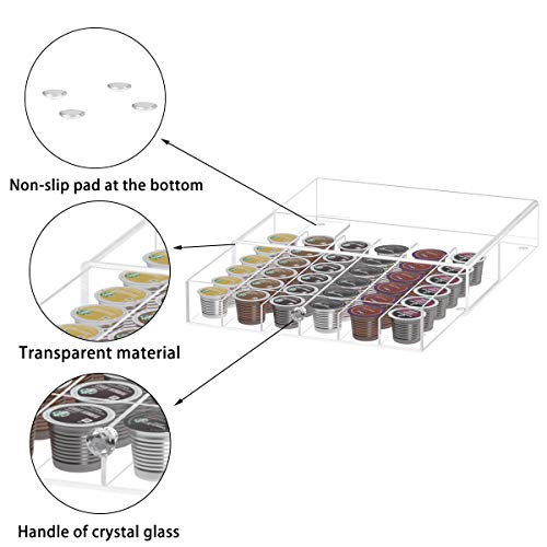 AITEE - حامل كبسولات كيه كاب مزود بدرج ومصنوع من الاكريليك، مقسم من الداخل لتنظيم كبسولات القهوة من ايتي، سعة 36 كبسولة
