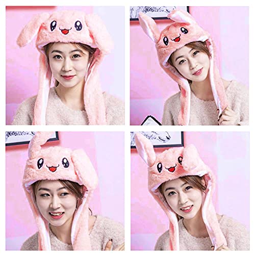 AIYUENCICI - ايوينسيسي قبعة قطيفة مضحكة على شكل ارنب واذنين متحركة، قبعة قفز لطيفة على شكل ارنب للنساء والفتيات والحفلات التنكرية والعطلات (بينك)