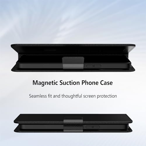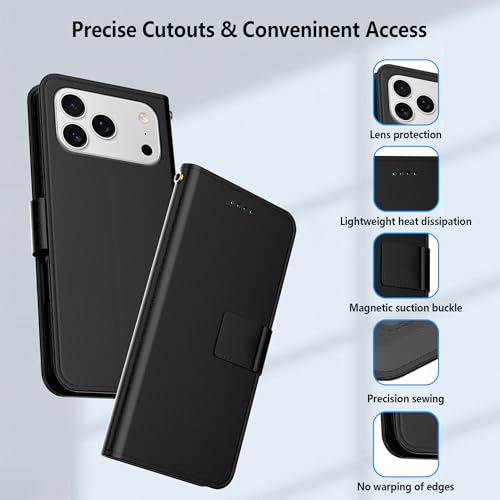 Aiziki - جراب حماية قابل للطي بنمط المحفظة من ايزيكي، مصنوع من الجلد الصناعي مع فتحات للبطاقات وقفل مغناطيسي، لموبايل آيفون 17 برو ماكس، لون أسود