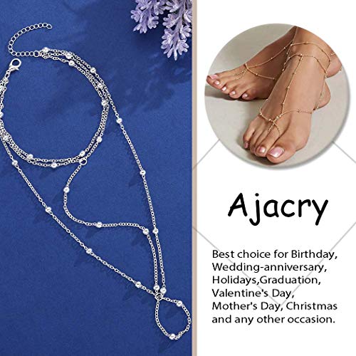 Ajacry - Ajacry مزدوجة الطبقات خلخال سلسلة الخرز القدم الشاطئ تو مجوهرات للنساء والفتيات المراهقات الفضة النيكل