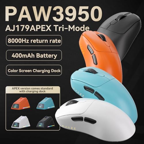 - [اتصال متطور ثلاثي الأوضاع/الوضع المزدوج ونسبة معدل تصويب عالية] تدعم سلسلة AJ179 من اجاز التبديل السلس بين البلوتوث والاتصالات اللاسلكية والسلكية 2.4 جيجاهرتز. توفر بشكل فريد وقت استجابة منخفض للغاية يبلغ 0.125 مللي ثانية، مما يوفر 8000 هرتز في الوضع اللاسلكي و1000 هرتز في الوضع السلكي، ثماني مرات أسرع من ماوس الألعاب القياسية ويوفر ردود فعل فورية وحركة مؤشر أكثر سلاسة.
