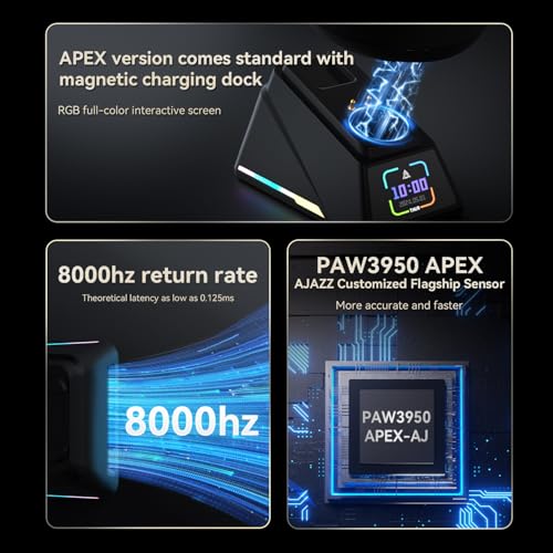 coverzone - قاعدة شحن مغناطيسية AJ-179 ابيكس 42000 نقطة لكل بوصة مع ماوس بشاشة TFT ومستشعر باو 3950 - دونجل 8K AJ179 من اجاز (اسود)