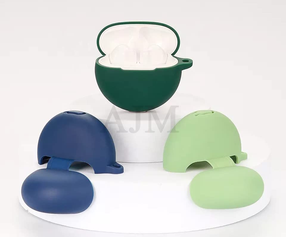 AJM - جراب بحماية كاملة 360 درجة من اي جي ام تصميم مقاوم للصدمات مصنوع من المطاط الناعم ومزودة بسلسلة مفاتيح لسماعات اوبو اينكو بادز 2 (أسود)