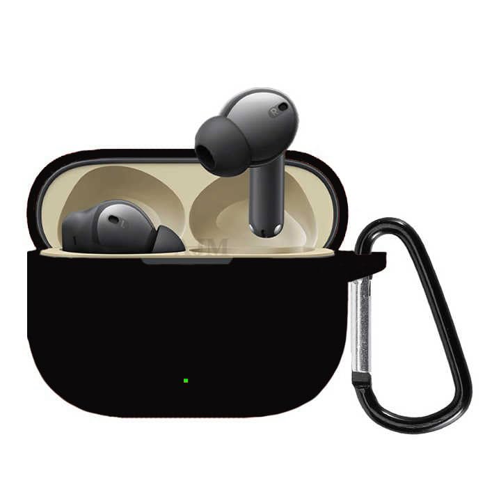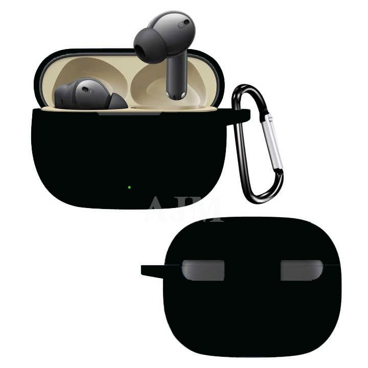 AJM - جراب حماية 360 درجة مقاوم للصدمات من المطاط الناعم مع سلسلة مفاتيح لسماعات ريلمي بادز T300 من ايه جيه ام، أسود
