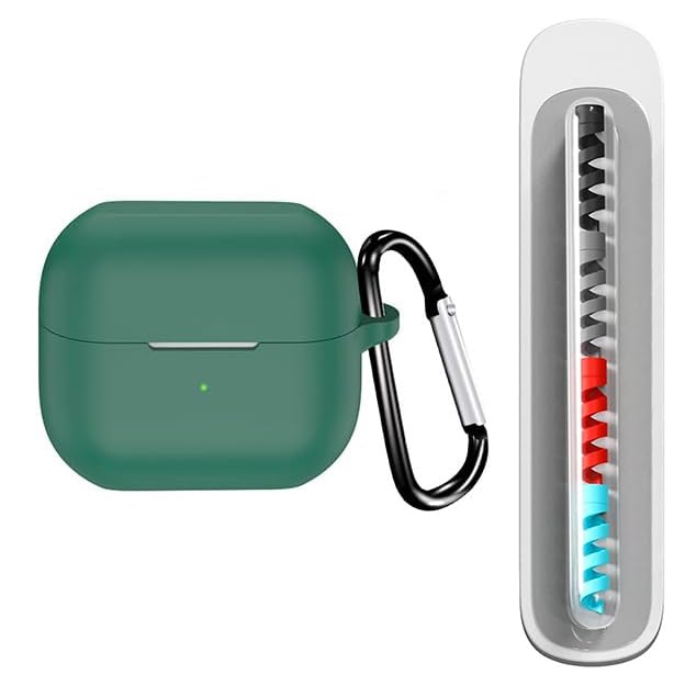 AJM - اي جي ام جراب حماية 360 درجة مضاد للصدمات من المطاط الناعم مع سلسلة مفاتيح لسامسونج جالاكسي بادز 3 برو (اخضر داكن)، سيليكون