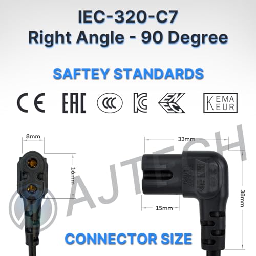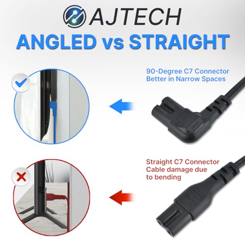 AJTECH - كيبل تلفزيون بطول 1 متر بشاحن اوروبي من ايه جيه تيك® - كيبل طاقة 90 درجة معتمد بقطبين - كيبل IEC-C7 - متوافق مع بلاي ستيشن 5 وبلاي ستيشن 4، كيبل طاقة اوروبي رفيع متوافق مع Xbox X وطابعة وتلفزيون ال جي