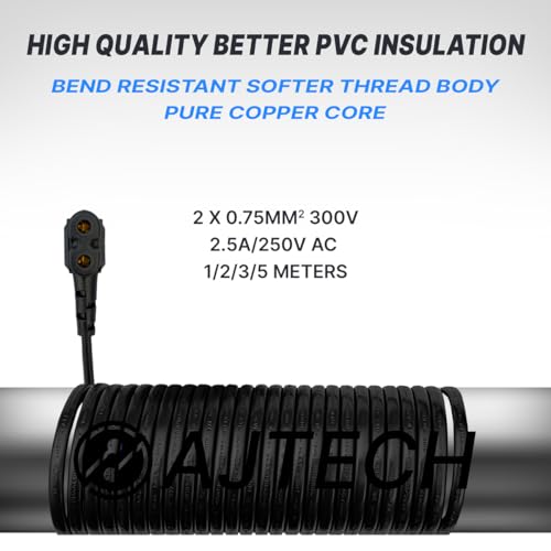 - كابل الطاقة: كابل اللجنة الكهروتقنية الدولية عالي الجودة بطول 1 متر مصنوع من قلب نحاسي نقي 2 × 0.75 ملم مربع معزول بمادة PVC..