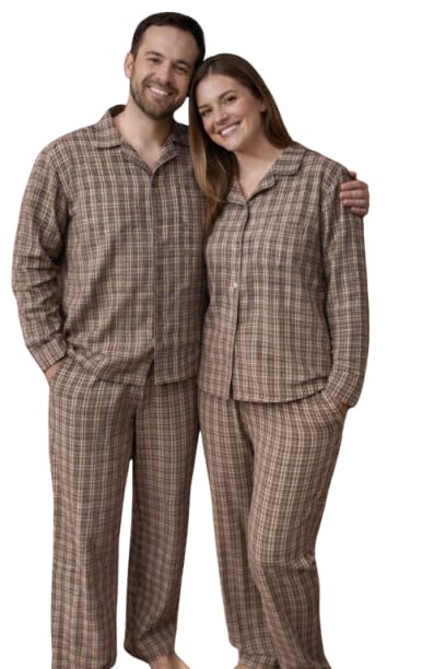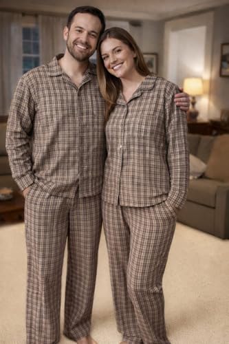 AJYAL - بيجامة متطابقة للأزواج مزينة بنقشة مربعات للرجال والنساء، بلوزة بأزرار وأكمام طويلة مع بنطلون، ملابس منزلية وملابس نوم مريحة من أجيال
